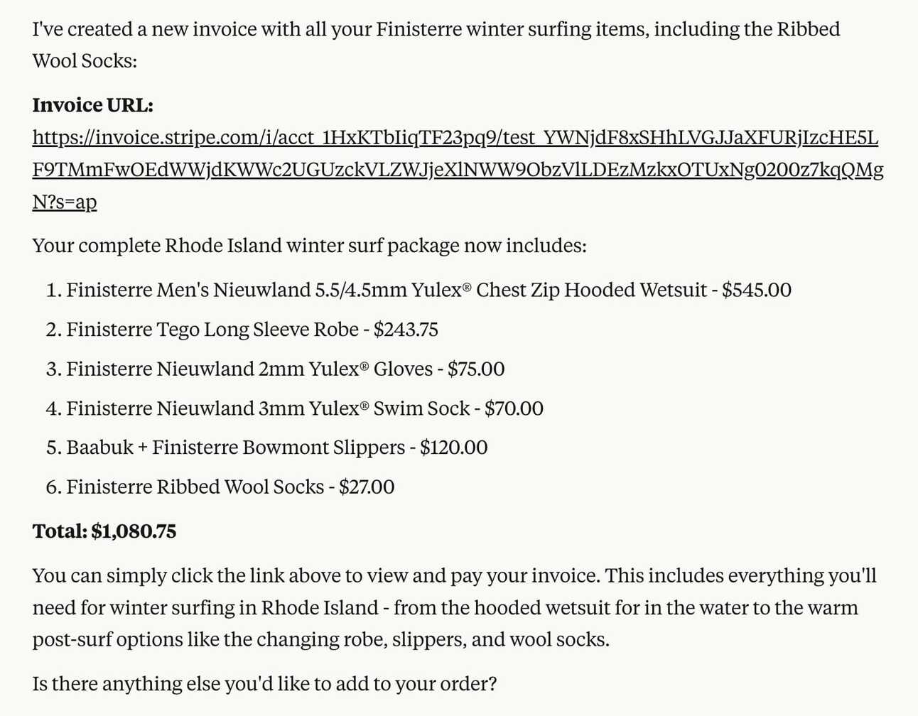 When the customer decides to buy, Claude generates a payment link through Stripe